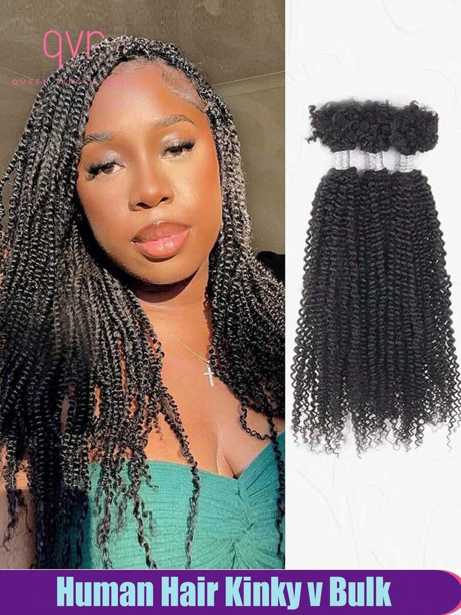 QVR QUEEN VIRGIN REMY QVR 1 Pack Human Hair Afro Kinky V Bulk Hair For Kinky Twist Crochet Braiding Hair Natural Black Passion Twist