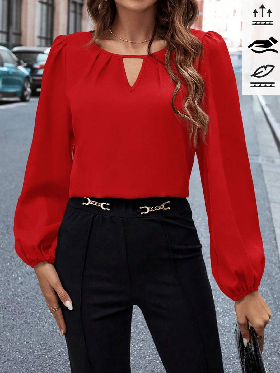 SHEIN Clasi Women's Keyhole Neck Lantern Sleeve Shirt,Long Sleeve Tops