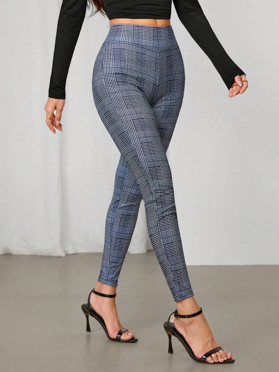 SHEIN PETITE Women's Casual Plaid Skinny Pants, Suitable For Commuting And Daily Wear, Autumn