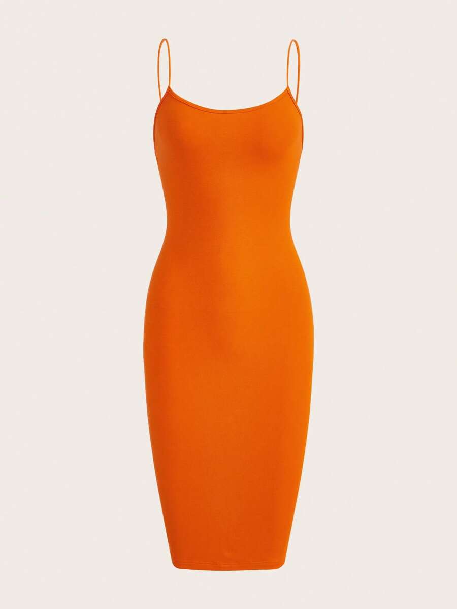 • SHEIN Privé Solid Cami Bodycon Dress - Orange - View 4
