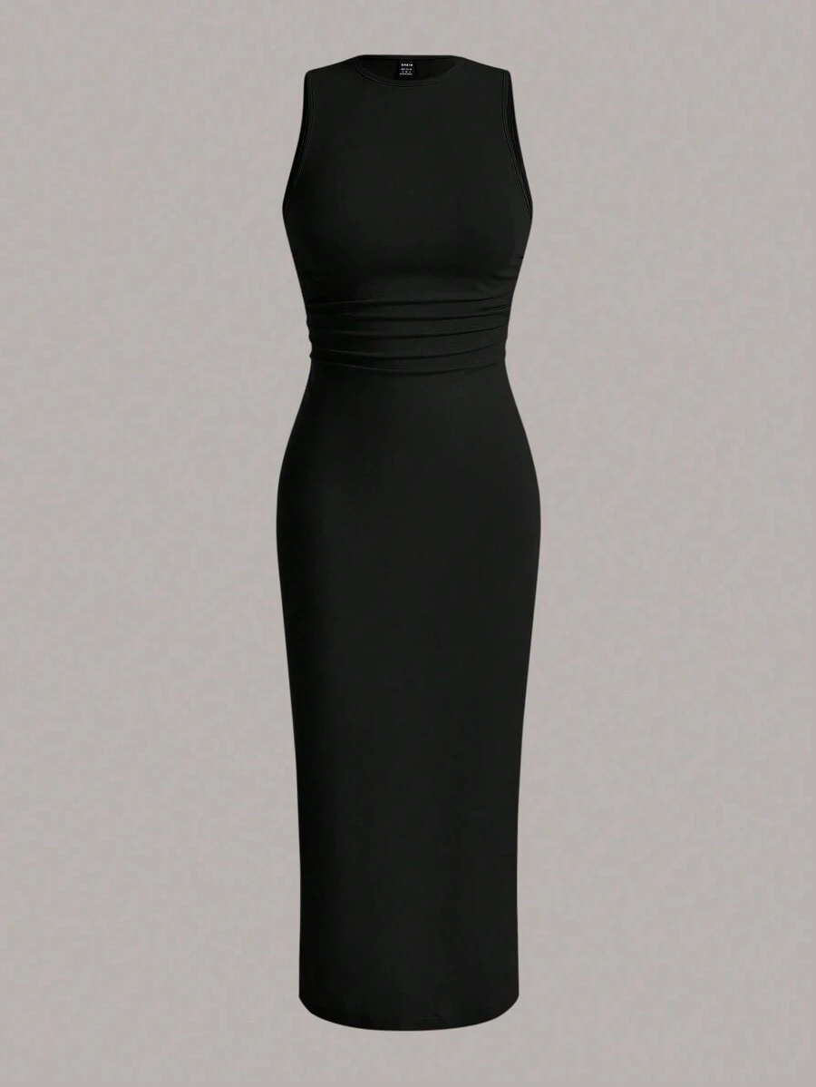 SHEIN Tall Simple Knitted Tight Long Black Dress