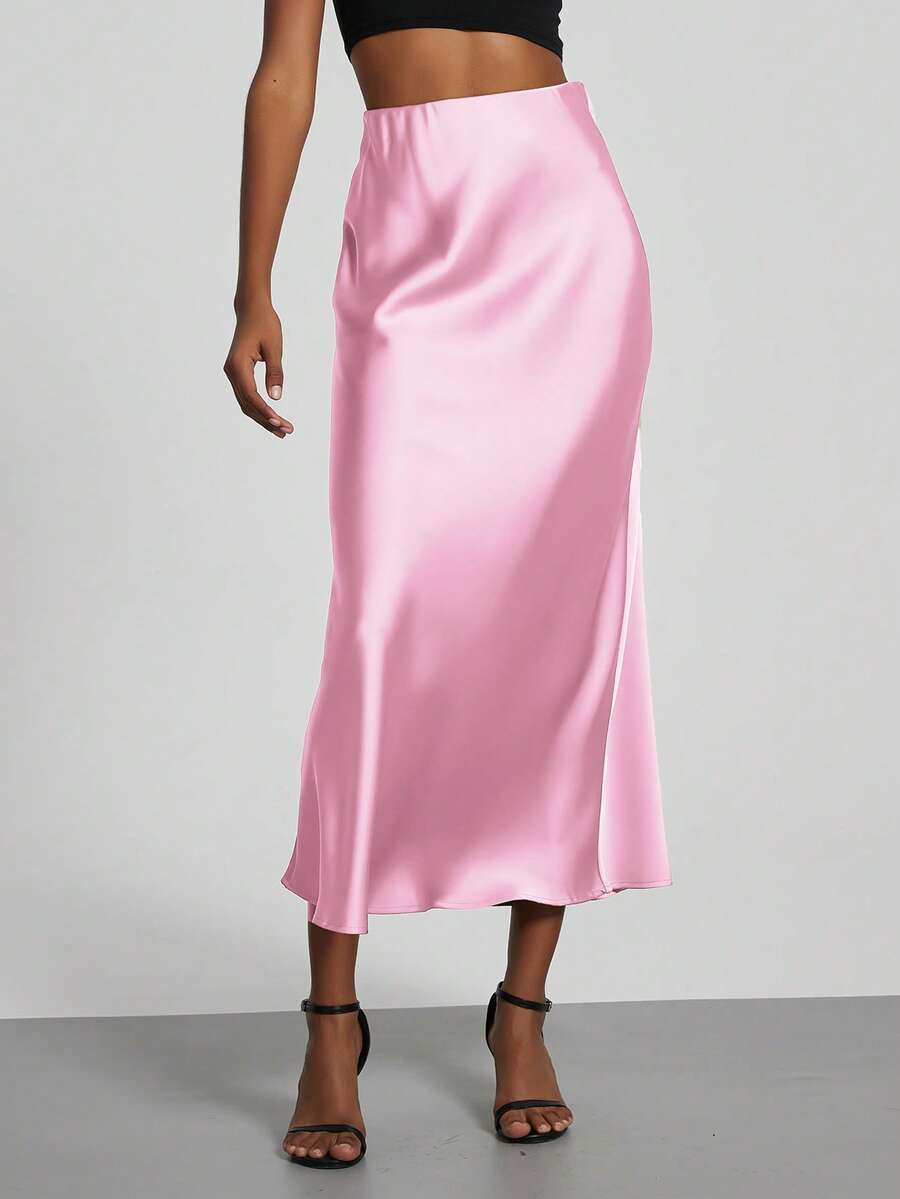 Se-Helo Fashion Women's Elastic Satin Feeling Satin Maxi Skirt - Crabapple Pink