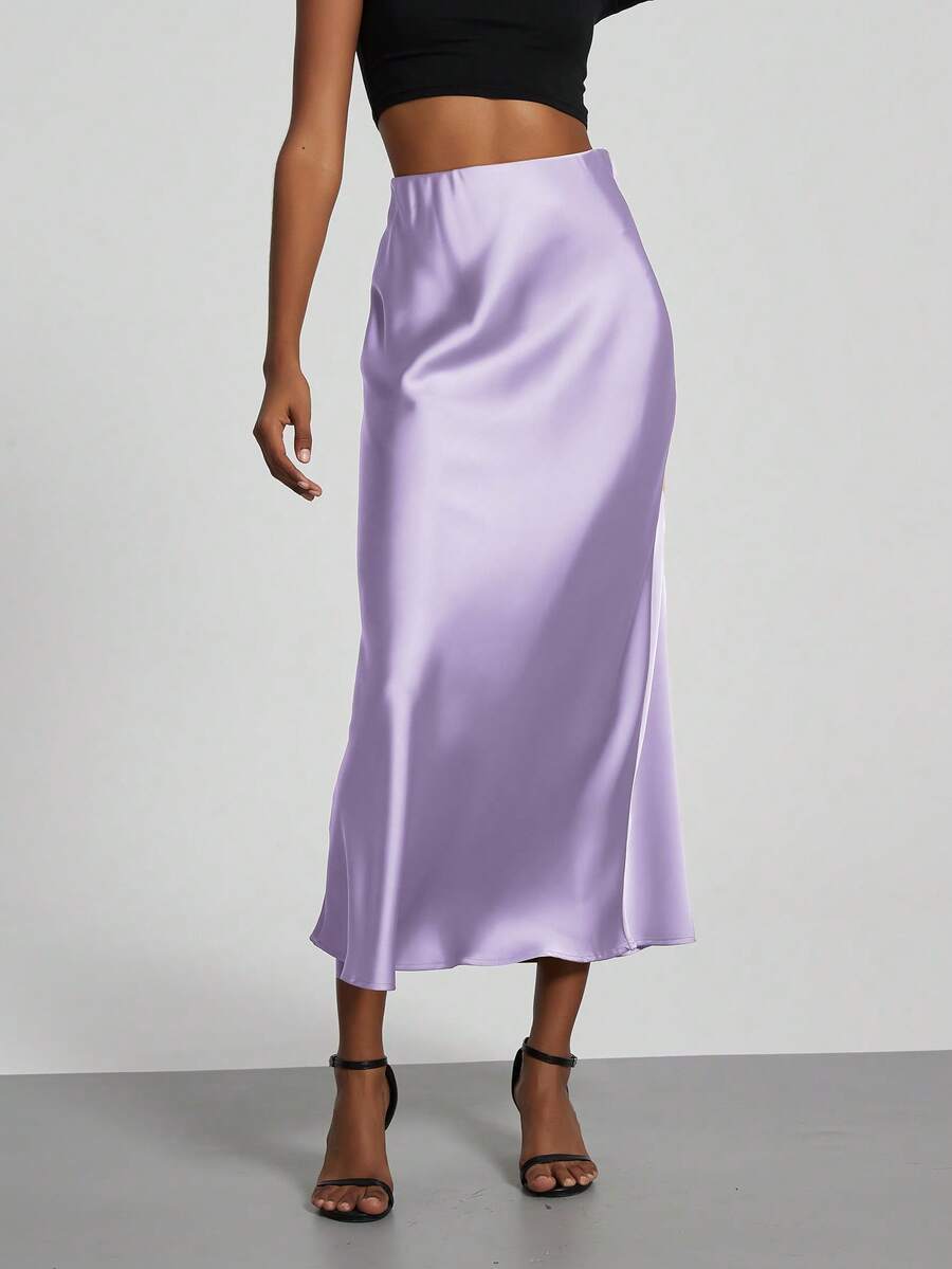 Se-Helo Fashion Dam Maxikjol med Elastisk Satinkänsla - Lavendel
