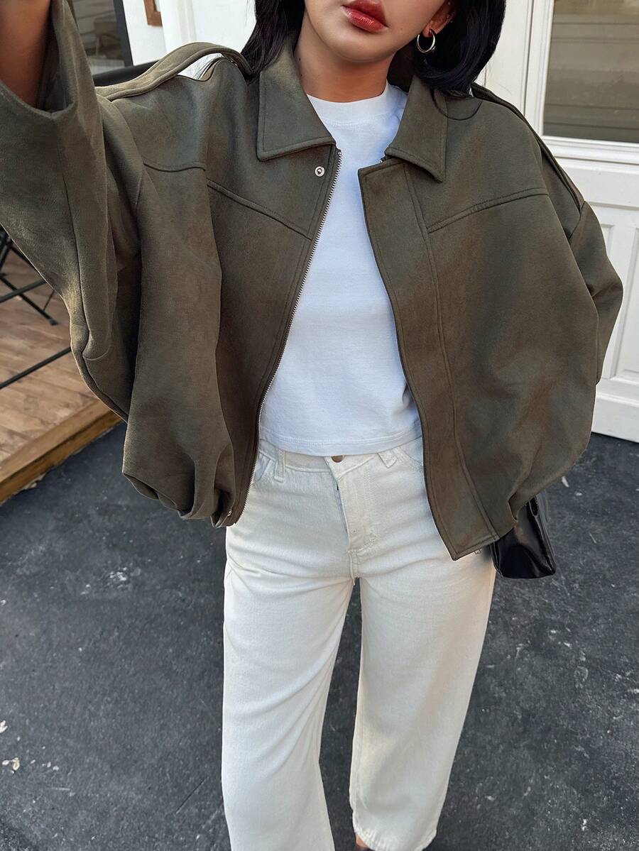 Seelio Autumn/Winter New Vintage Style Women Casual Versatile Suede-Like Green Jacket