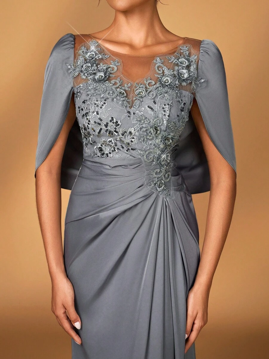 Serin Elegant Luxurious Embroidered Lace Sequin Patchwork Elastic Satin Ruffle Sleeve Mermaid Hem Dress, Suitable For Wedding, Party, Bachelorette Party, Vacation, Gala, Evening, Mother Of The Bride Dress, Valentine's Day