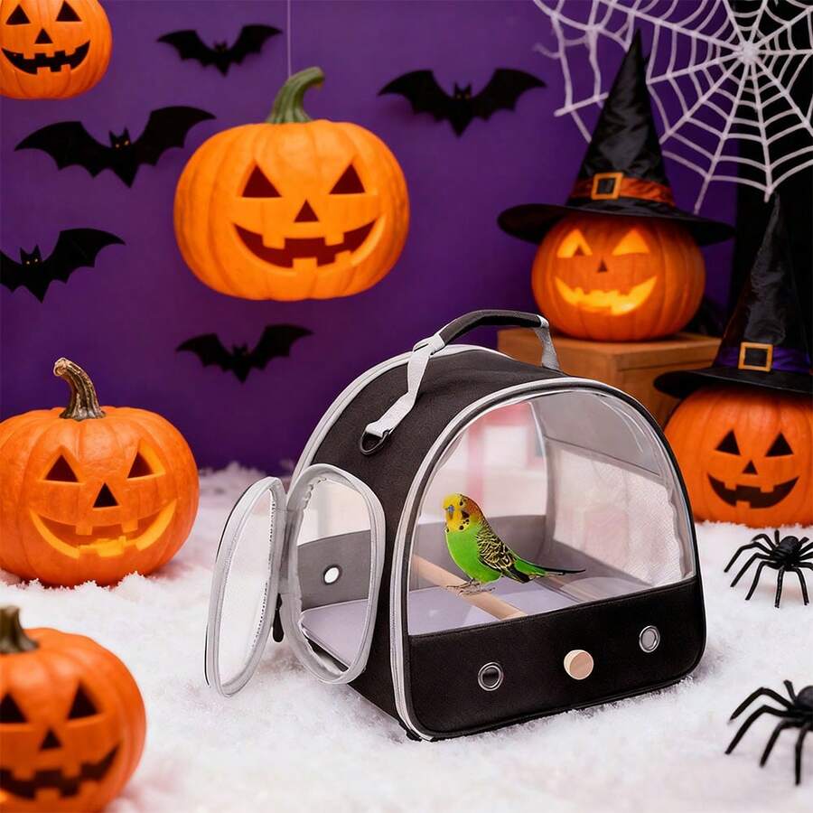 Small Bird Travel Cage Carrier, Portable Small Bird Parrot Parakeet Carrier With Standing Perch And Comfy Mat (NO Tray), Bird Carry Transport Bag For Vet Visit Shopping And Outdoor Adventure, Fall Home Halloween Decor And Christmas Gift