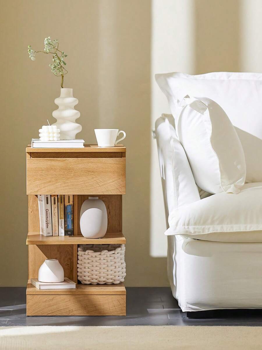 SoBuy FBT49-N, Bedside Table Night Stand Side Table End Table Coffee Table With 1 Drawer And 2 Shelves, Natural