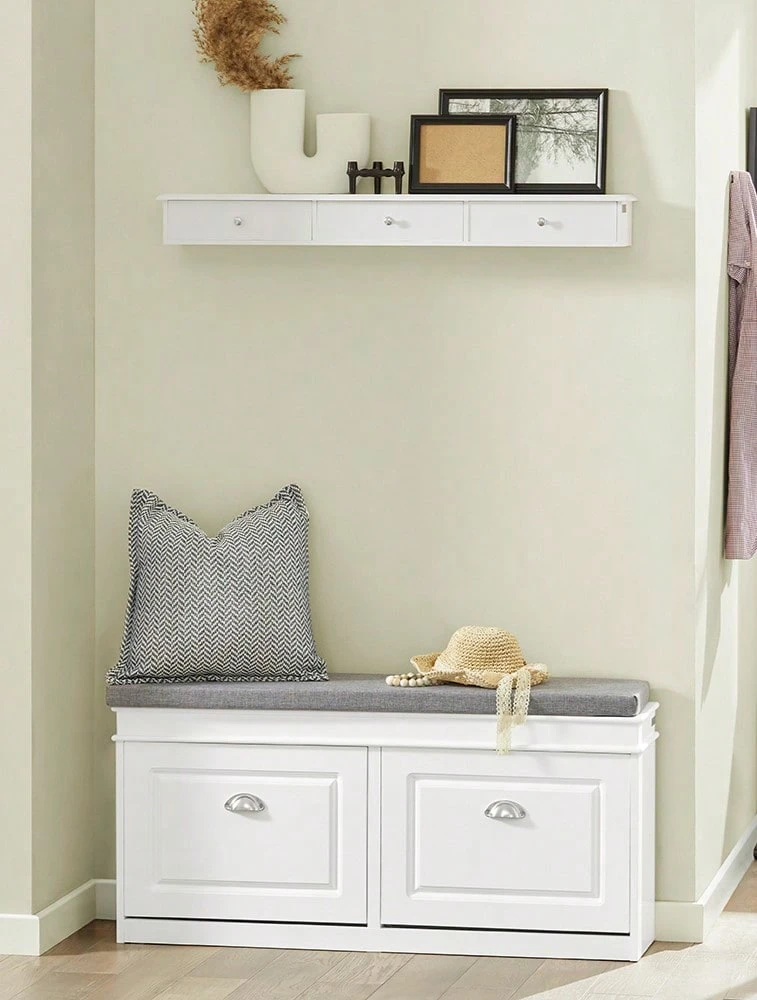 SoBuy Shoe Rack, Seating Chest, Bench With Seat Cushion, Shoe Bench With 2 Flaps, Blue, W X H X D Approx. 104 X 52 X 24 Cm FSR64-B Not Equipped With Side Drawer