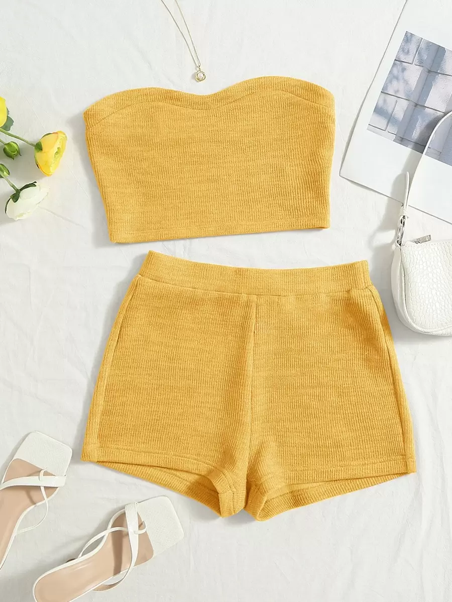 • Soleia Ribbed Knit Tube Top & Biker Shorts - Yellow - View 6
