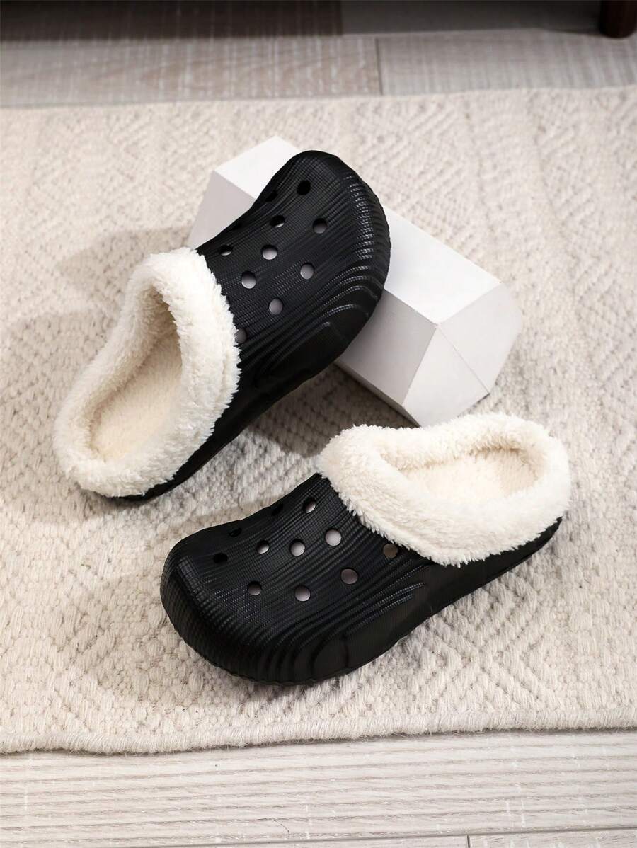 Solid Color Plush Lined Slippers, Winter Cozy & Warm Slip On Clogs, Comfy Indoor & Outdoor Slippers