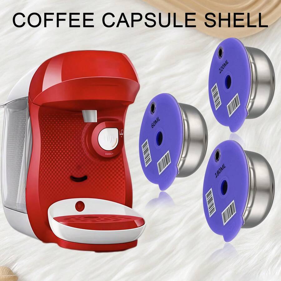 Stainless Steel Refillable Capsule Shell + Silicone Lid, Comes With Spoon & Brush, Reusable For Filling Coffee Powder
