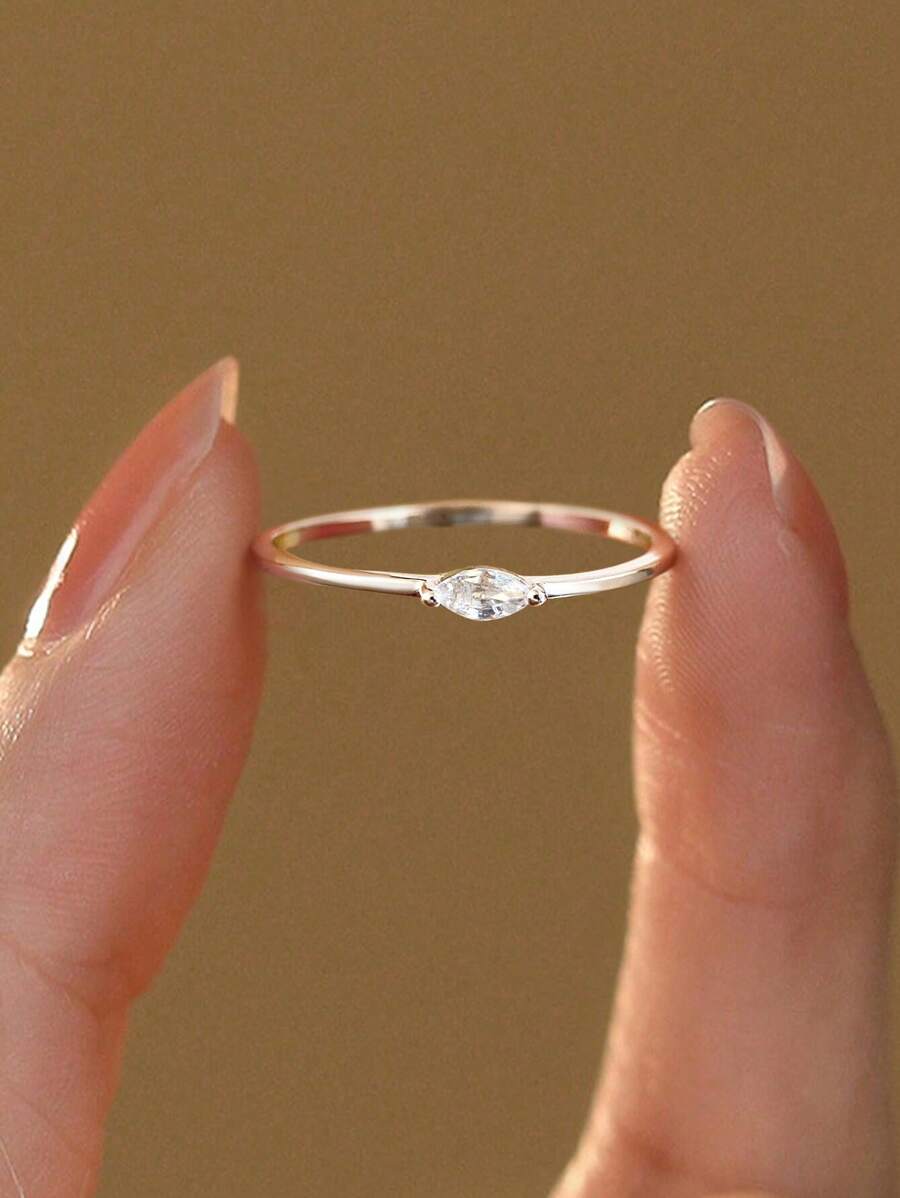 Stylever 1 st minimalistisk ring i 925 sterlingsilver, med inläggningar av zirkonia, delikat och utsökt, en omtänksam present till flickor eller lärare