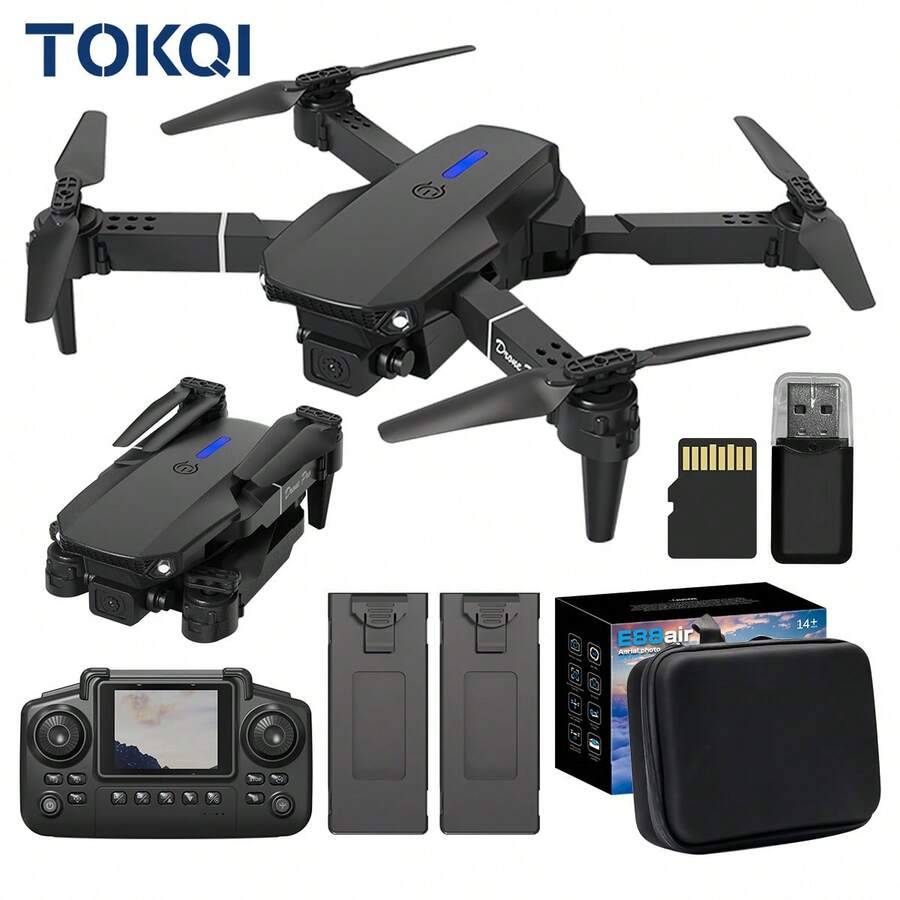 • TOKQI 2025 Entry-Level Drone, Equipped With 3 Batteries - WiFi FPV Real-Time Video, Foldable Remote Controller, 360° Stunt Flip, Dual HD Cameras, Full Protection Frame - Outdoor Flying & Holiday Gift Set - Black - View 2