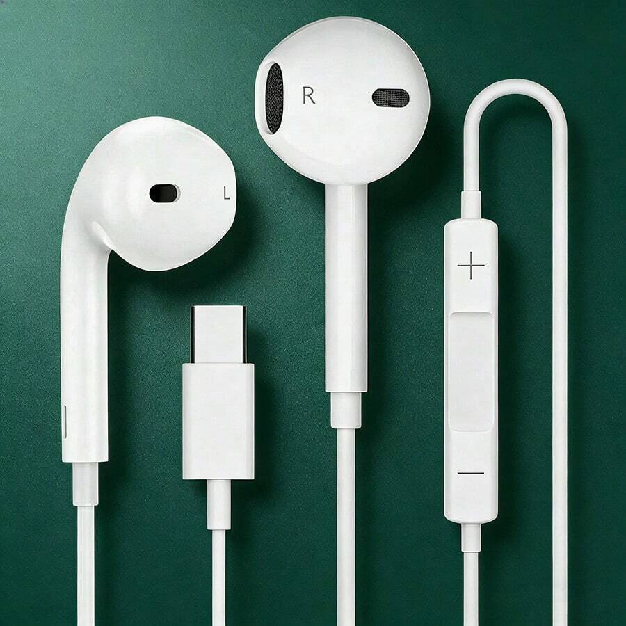 Type-C Jack In-Ear Headphones Mobile Phone Wired Earphone Gaming Earbuds Voice Call Noise Reduction Android Suitable For Men And Women Gift Sports White High Sound Quality Clear Bass Compatible With Most USB-C/Type-C Jack Interface Devices,Type-C In-Ear Headphones | Noise Isolation, Stereo Sound, Volume Control, Compatible With IPhone 15/16 Pro/17 Air/17 Pro Max And Most USB-C Devices, Gaming Headset For Mobile And PC