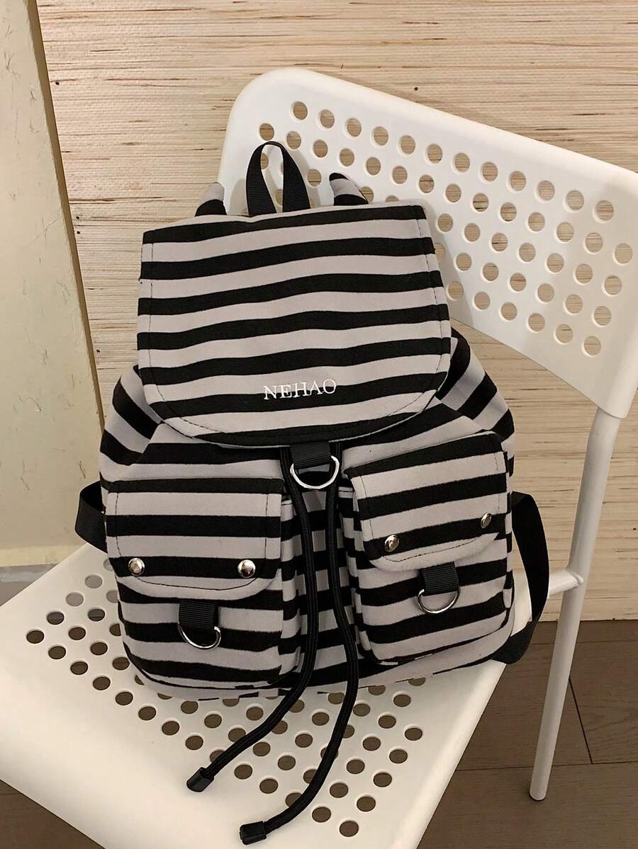 Women's High-Quality Retro Striped Functional Backpack, Large Capacity Casual Daypack