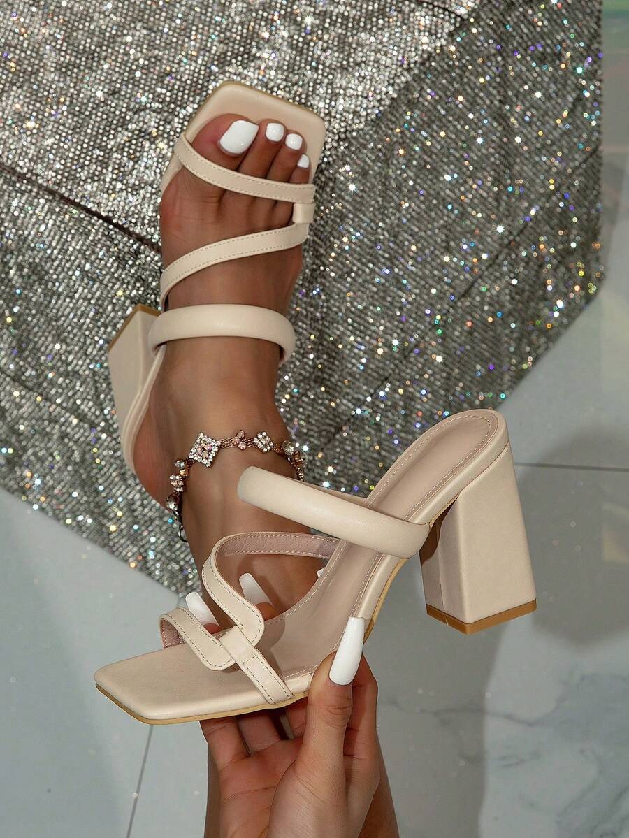 Women's Square Toe High Heel Slides, Square Toe Mules, Chunky Heel Sandals, Apricot Mules, Apricot Sandals, Elegant Leather Sandals, Vacation Style Sandals, Wide Foot Chunky Heel Sandals, Beige Sandals, Party High Heel Sandals, Summer Thick Heel Sandals, Wide Foot Chunky Heel Sandals