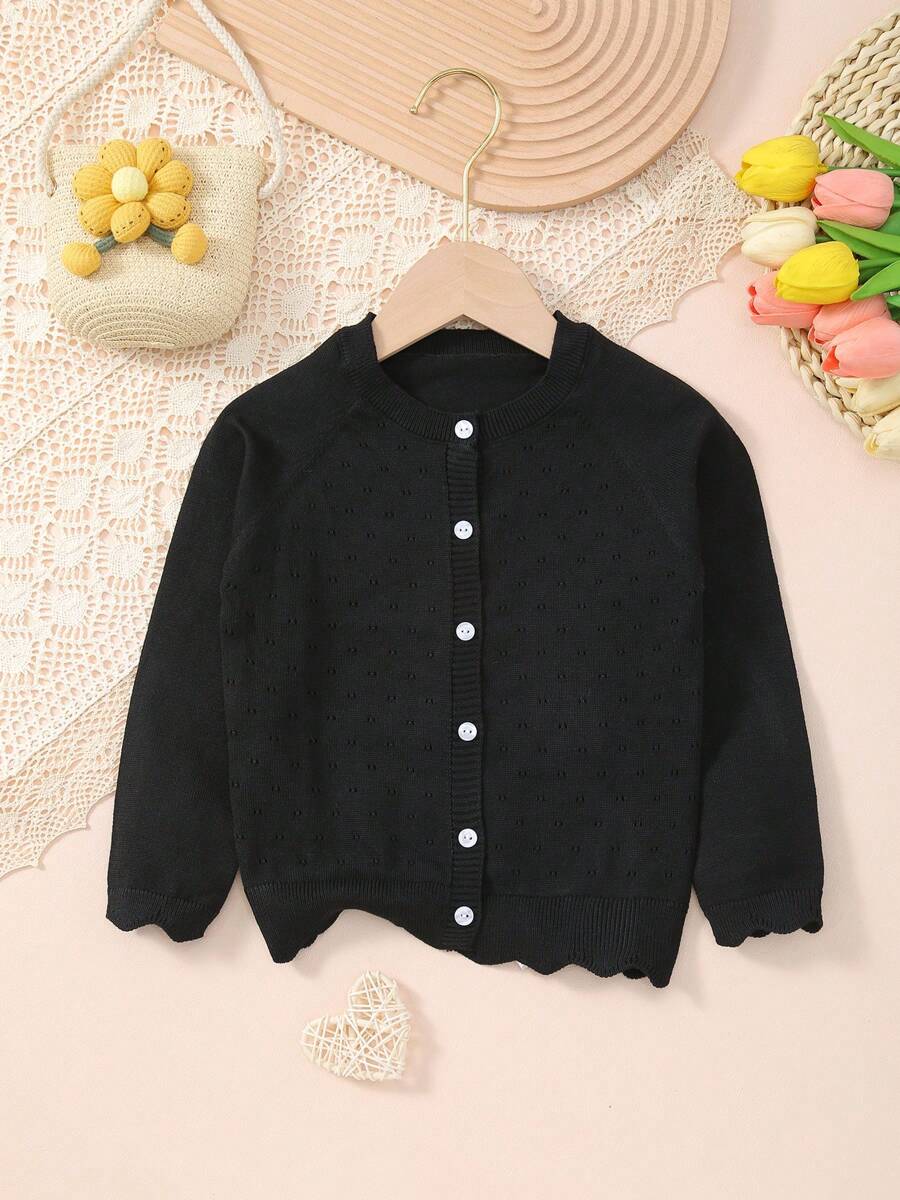 • Young Girl Lightweight Button Hollow Knit Cardigan