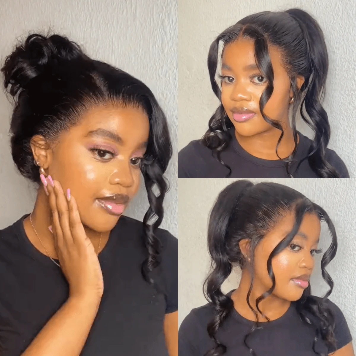 ZHENDEFA 360 Degree Full Head Top Invisible Wavy HD Transparent Lace Front Hairline No Glue Drawstring 360 Degree Front Hair Wig, 200 Density For Women