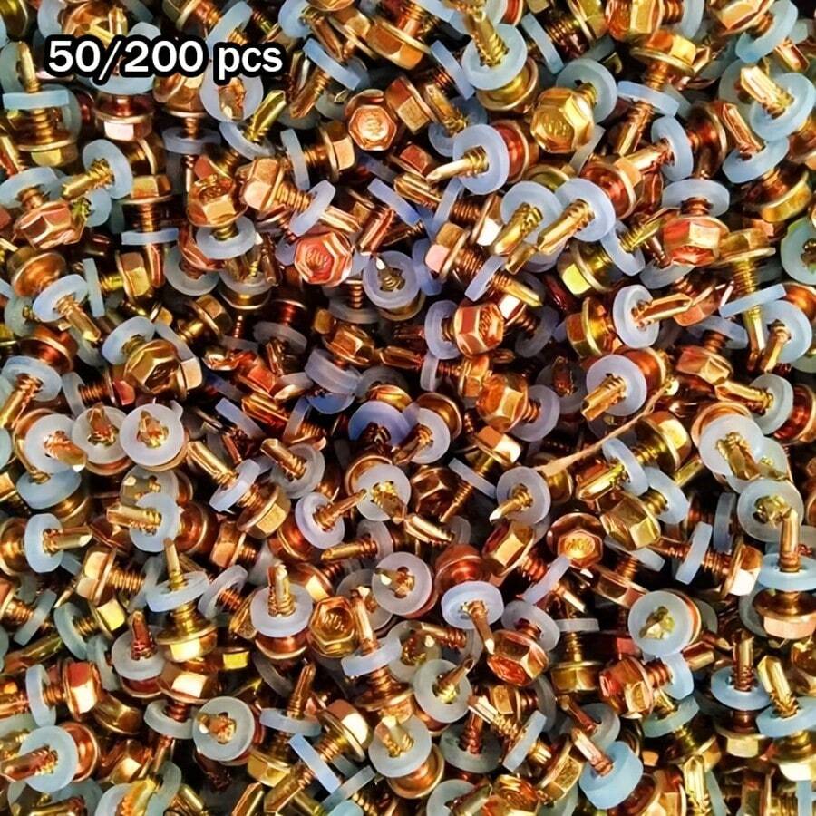 • Zinc Plated Hex Head Self-Drilling Screws With Washer, External Hex Drive, Commonly Used For Metal, Furniture, Construction And Repair, High Strength Fasteners - Multicolor - View 5