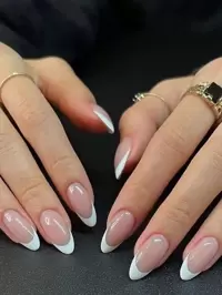 24pcs Medium Long Almond Shaped Minimalist White French Full Cover False Nails, Suitable For Ladies And Girls French Tip Press On Nails Nail Supplies